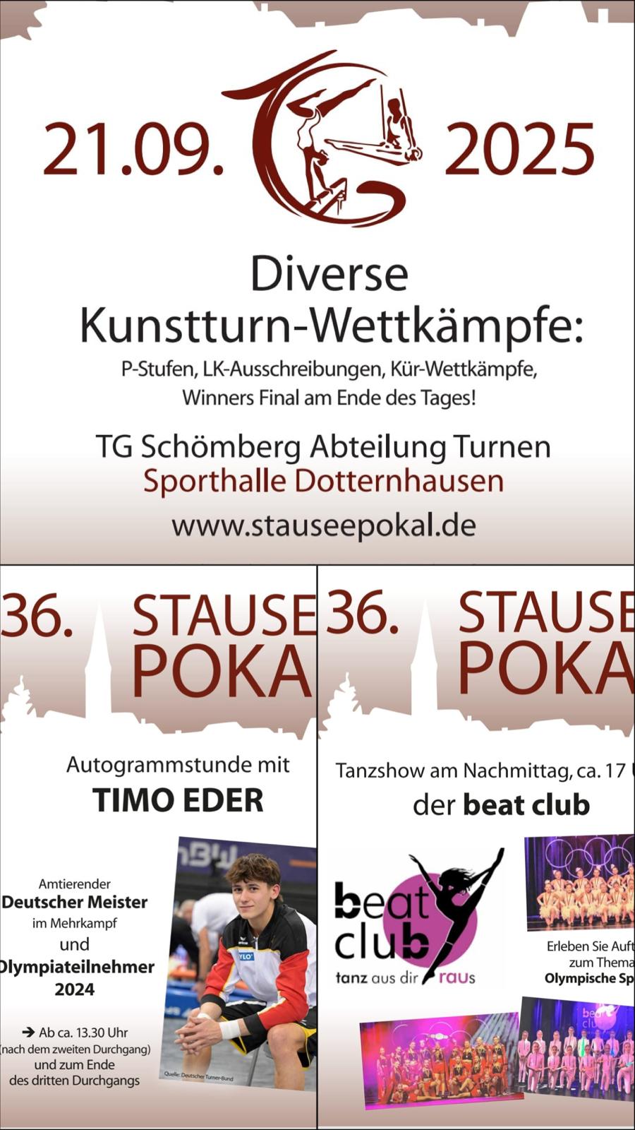 Wir freuen uns sehr, dass unser 36. Stauseepokal schon kurz bevorsteht. Dieser findet am Sonntag, den 21.09.2025 in der Sporthalle in Dotternhausen statt. Auch in diesem Jahr erwarten wir viele Turnerinnen und Turner aus nah und fern, die spanne...